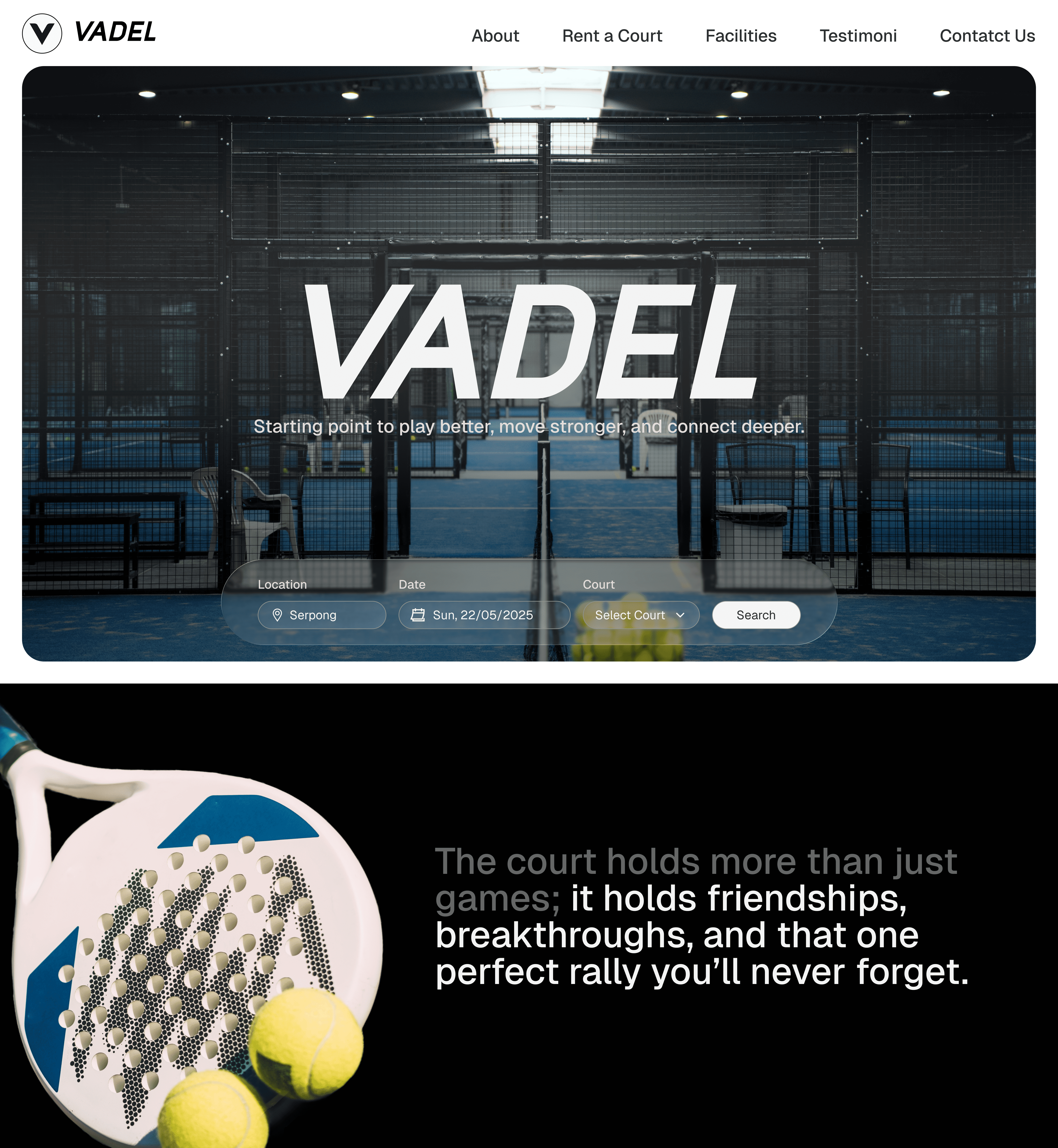 Vadel is a padel court booking platform designed to feel as exciting as the sport itself. This project aimed to create a modern and stylish landing page that speaks to the lifestyle of today’s active, trend-aware users. Inspired by the growing popularity of padel among urban youth, the design features a bold use of glassmorphism, soft gradients, and microinteractions that make the experience feel premium and playful.